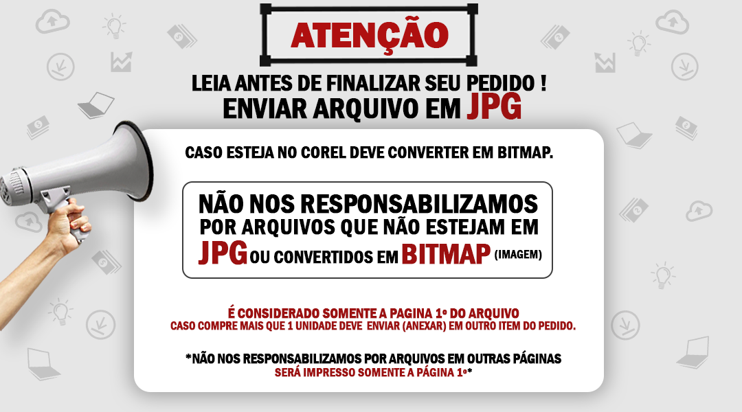 Formatos aceitos: JPG ou BITMAP (Imagem fechada) Cores: > Arquivos corretos evitam retrabalho e agilizam a produção.