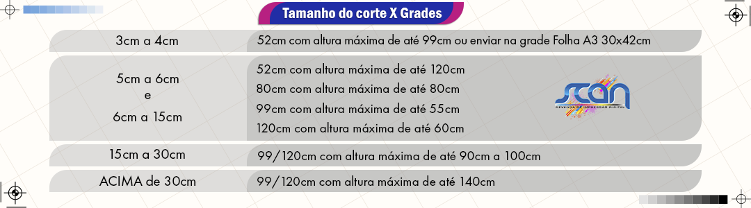 A faca deverá ser enviada em vetor. A faca de corte deverá estar no mínimo 2mm de distância do texto e 3mm de sangria. Variação de até 1mm no corte é considerado normal para este produto.