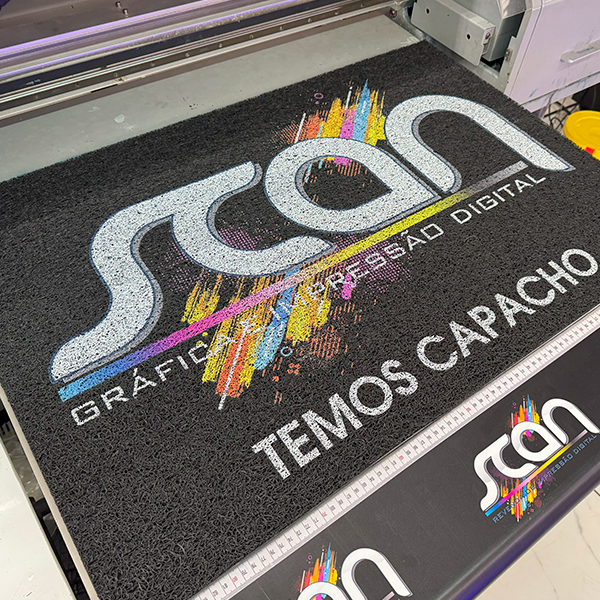 impressão UV com 2 camadas de branco no capacho preto